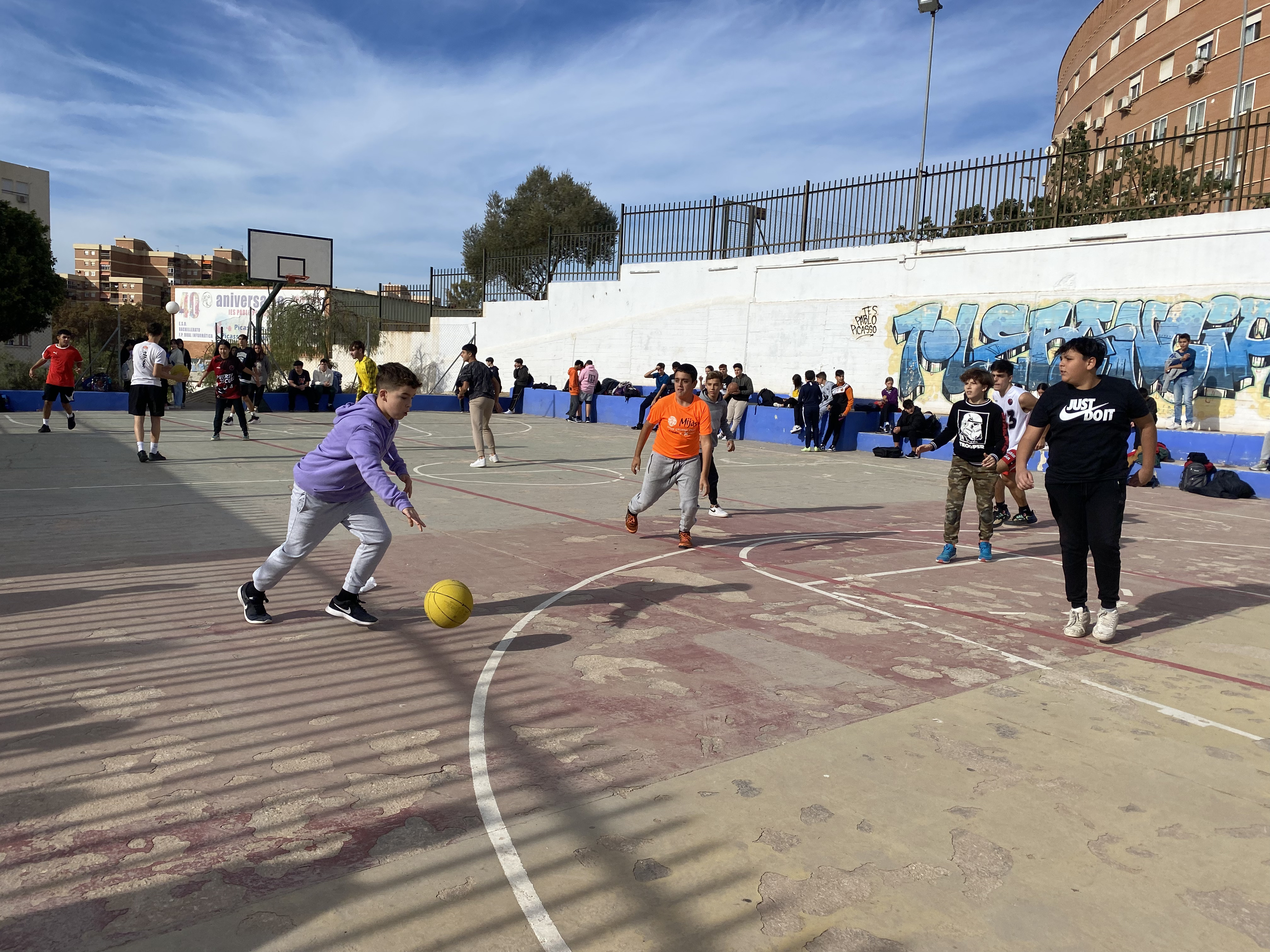 Se suele jugar en los recreos en la zona del gimnasio debido al espacio que se necesita. En la liga que se ha creado en el colegio hay un total de 7 equipos completos de aproximadamente 12 jugadores, aunque esto suele variar dependiendo de la semana, pues hay un equipo comodín que se apunta en el caso de alguna ausencia, lo cual hace que jueguen en muchas ocasiones menos o más jugadores por equipos.